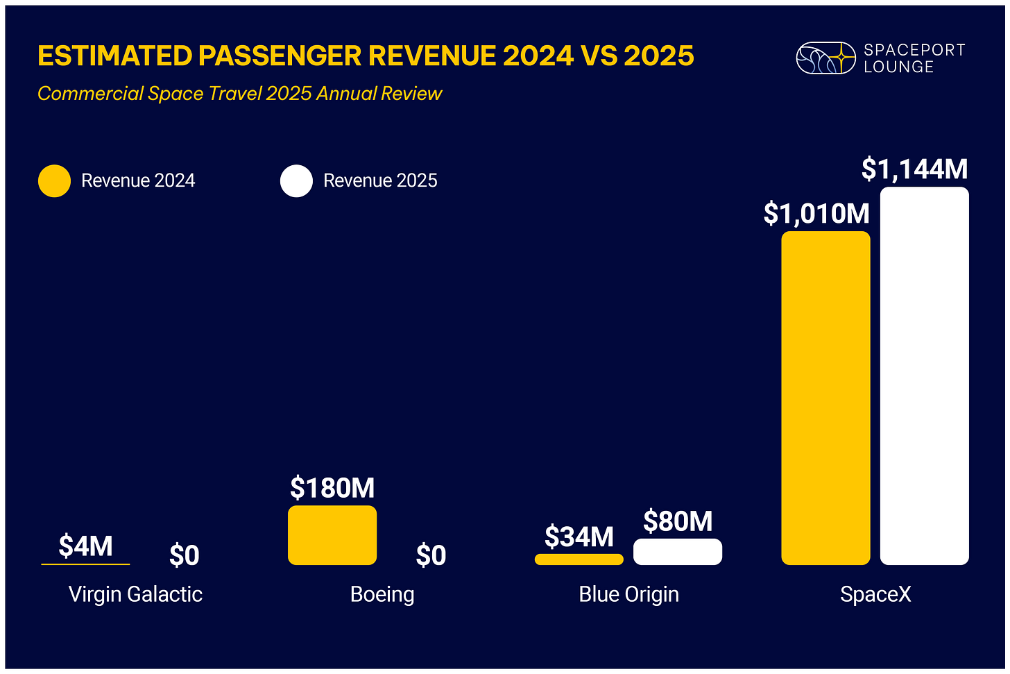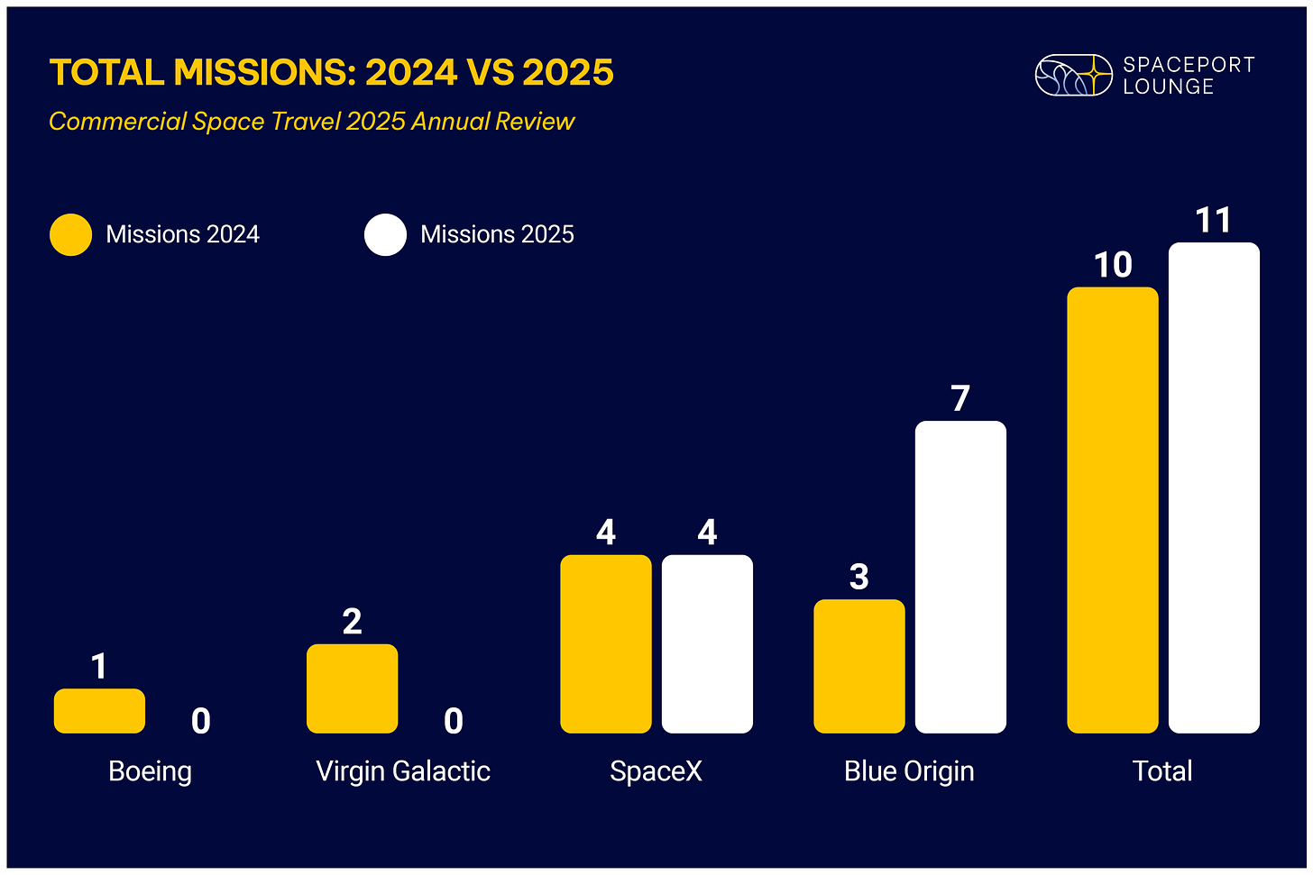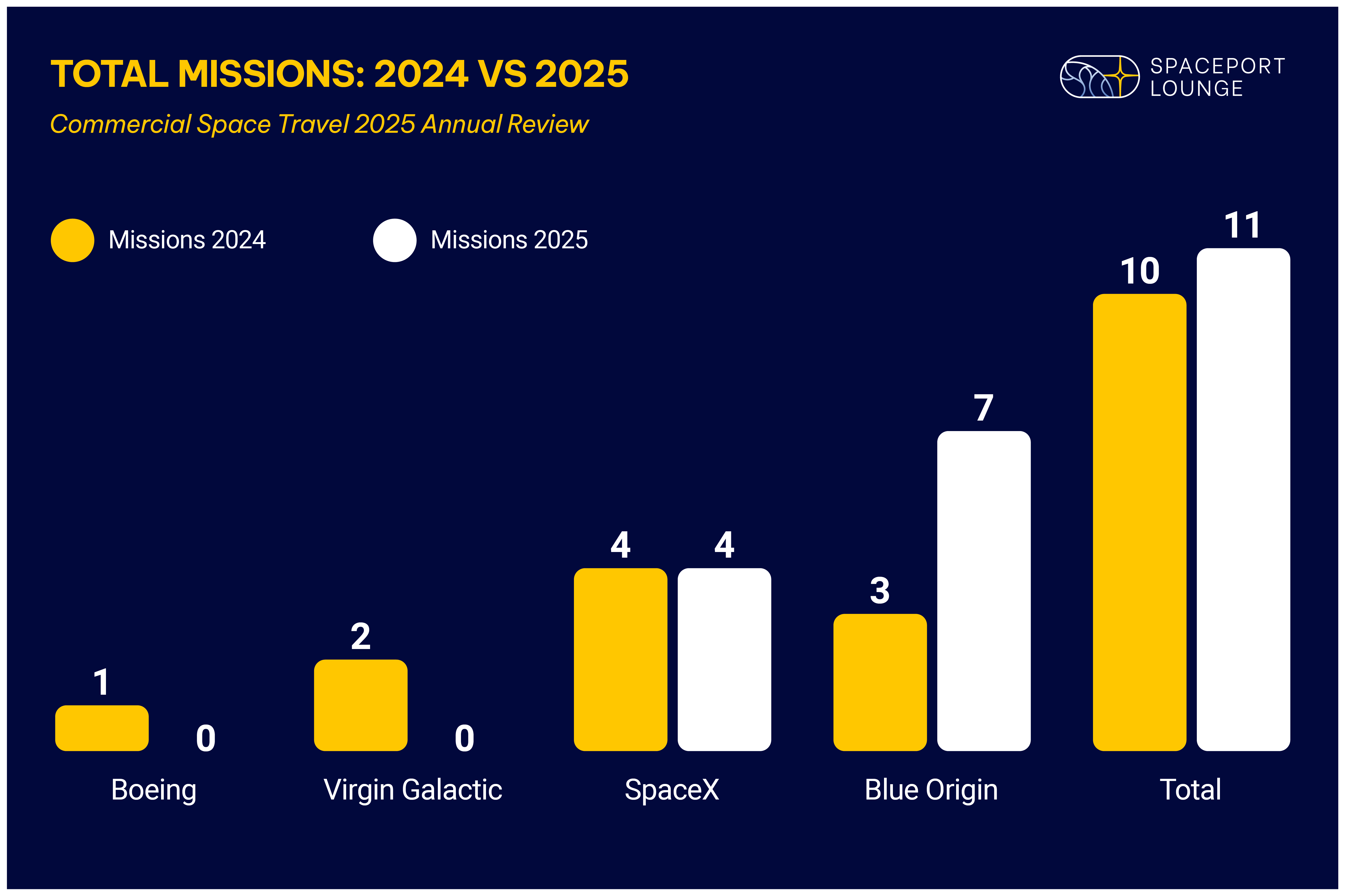 The absence of passengers from Boeing and Virgin Galactic underscores how sensitive industry totals remain to individual operator activity. Passenger growth in 2025 did not reflect broad participation, but rather a contraction in the number of active players.